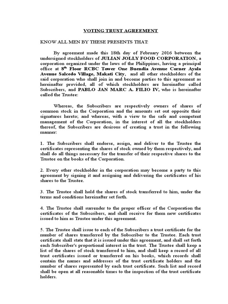 Seriously! 34+ Facts On Voting Trust Agreement Your Friends Forgot to Let You in!